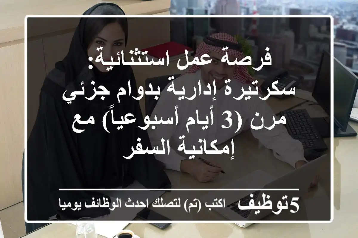 فرصة عمل استثنائية: سكرتيرة إدارية بدوام جزئي مرن (3 أيام أسبوعياً) مع إمكانية السفر