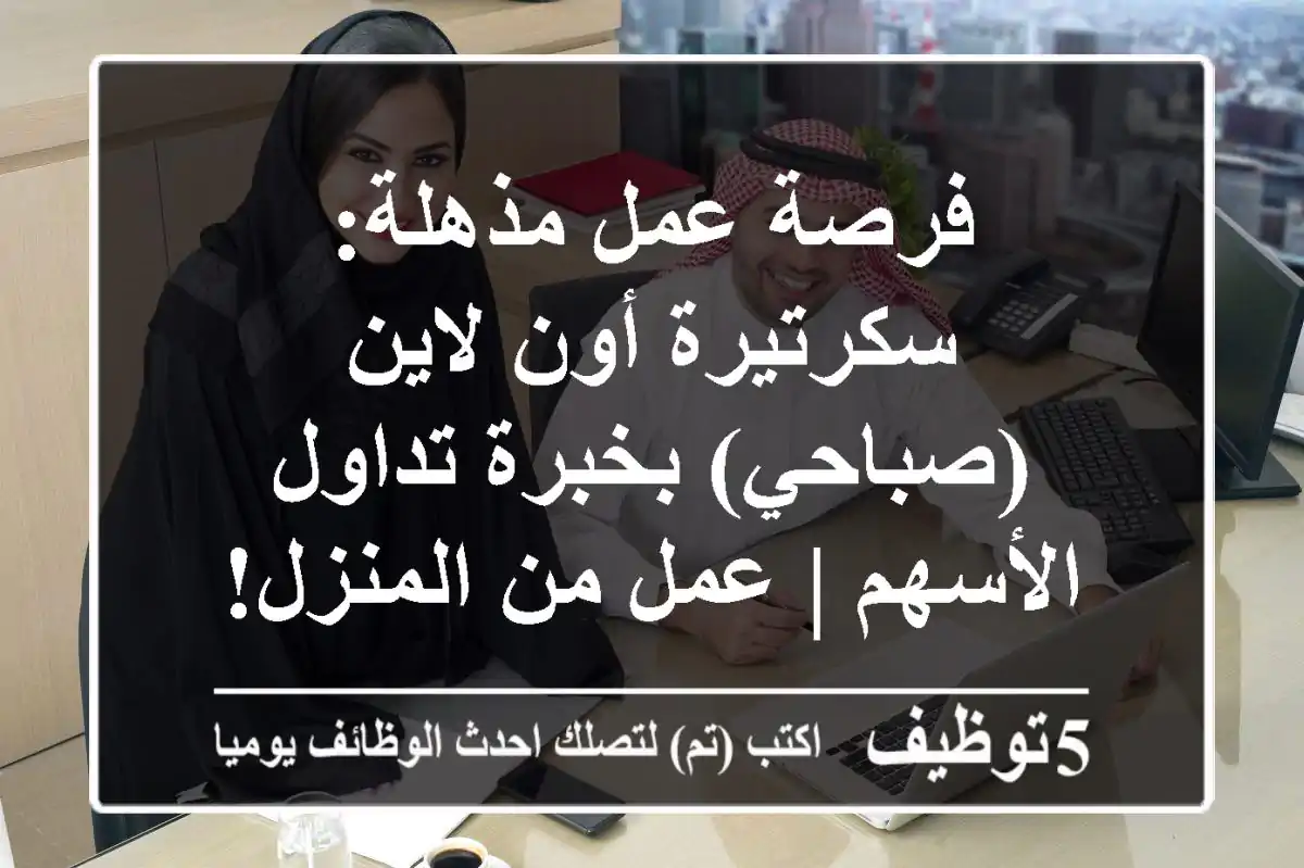 فرصة عمل مذهلة: سكرتيرة أون لاين (صباحي) بخبرة تداول الأسهم | عمل من المنزل!